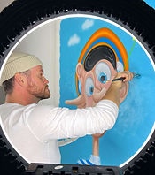 Discover the fragmented cubism and contemporary cartoon inspired art by Mr. Pinkbrush