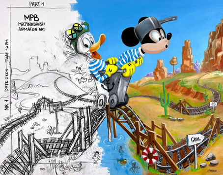 All contemporary paintings by Mr. Pinkbrush are created as original oil paintings on canvas.